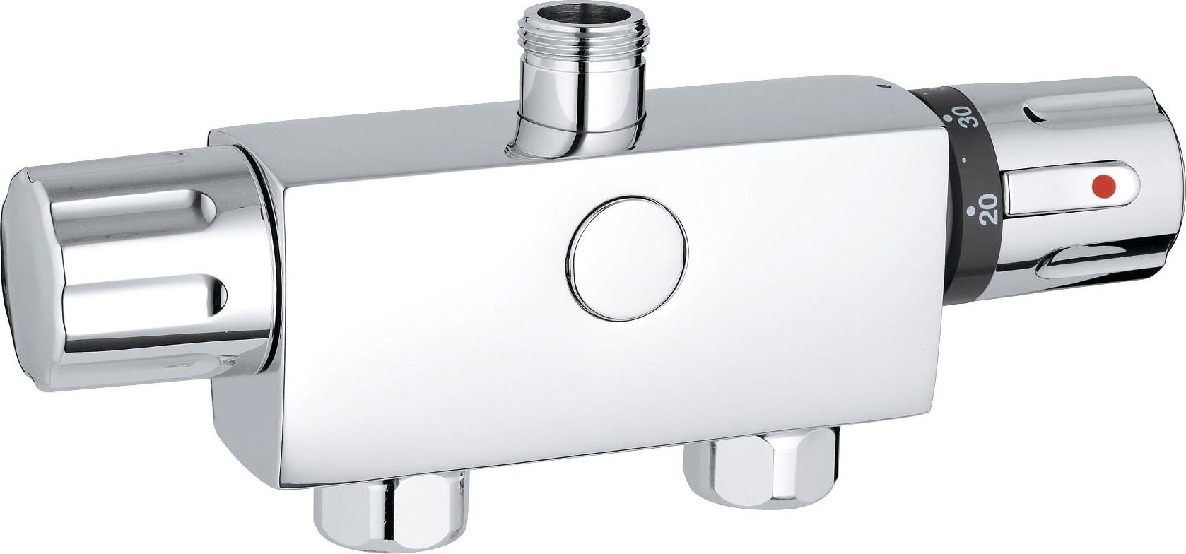 Внимания заслуживает устройство Precision Start от производителя Grohe. Монтируемое на стену устройство с респектабельной встроенной поверхностью имеет стопор безопасности при повышении температуры порядка 38С, систему экономичного расхода воды и керамический клапан. Устройство полностью безопасно (имеет защиту от обратного тока) и прослужит долгие годы (во многом благодаря клапану из керамики и наличию грязеочистительных фильтров). Термостат оснащен коротким изливом, отверстием для подсоединения шланга душа.