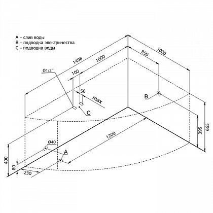• Размер: 150x100x72,4 см. Глубина: 50 см. Объем: 305 л.