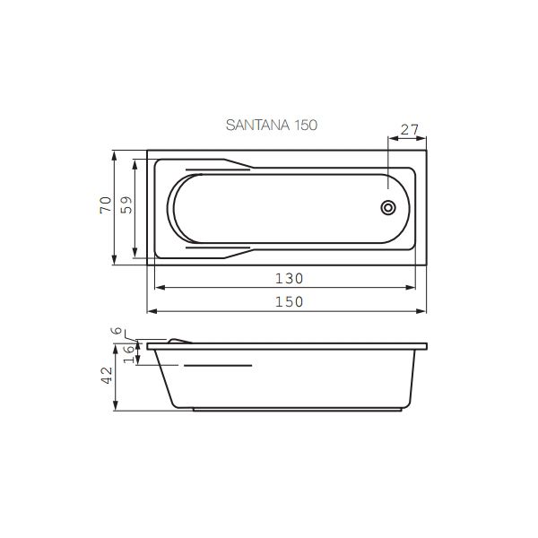 Акриловая ванна Cersanit SANTANA 150х70 купить
