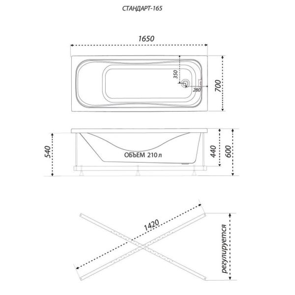 Акриловая ванна Triton Стандарт 165x70 см купить