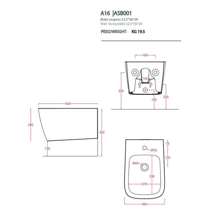 Биде Artceram A16 ASB001 15 00 grigio olivaArtceram A16 Биде подвесное 52,5х36см, 1 отв под смеситель, цвет: grigio oliva