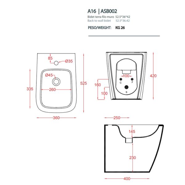 Биде Artceram A16 ASB002 41 00 matera *1 materaArtceram A16 Биде напольное 52,5х36хh42см, с 1 отв под смеситель, цвет: matera