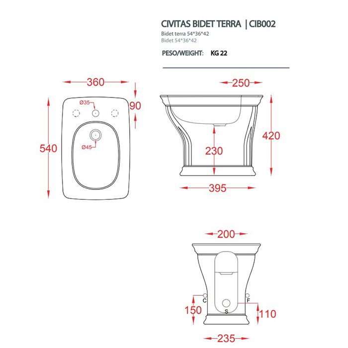 Биде Artceram CIVITAS CIB002 01 00 bi*1 белоеArtceram CIVITAS Биде напольное 36х54 см, с 1 отв под смес, цвет белый (крепится на силикон)
