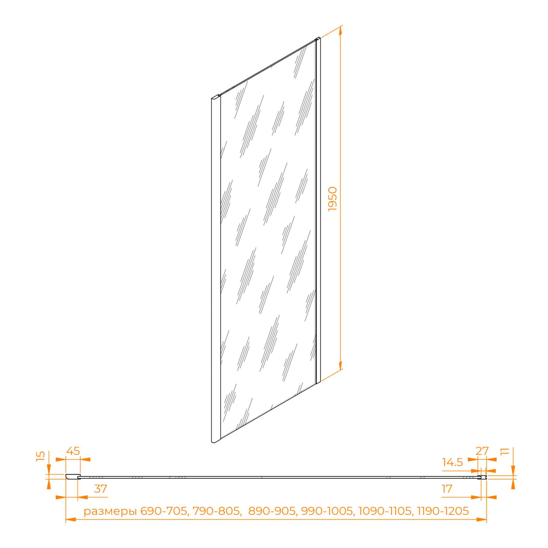 Комплектуется с моделями высотой 1950 мм и цветом профиля «хром». Подходит к моделям WA-002 / SV-12 / SV-13 / LE-12 / PA-11 / PA-12 / PA-13 / PA-14 / PA-016 / PA-23 / PA-24