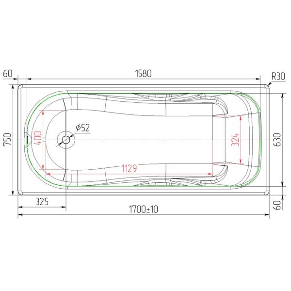 Чугунная ванна Универсал Сибирячка 170х75х45 см
