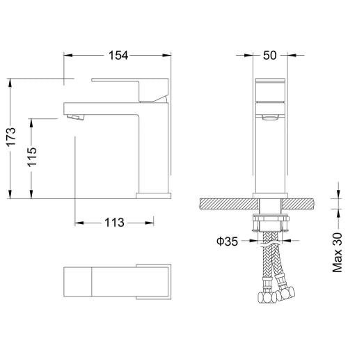 • Высота смесителя:
