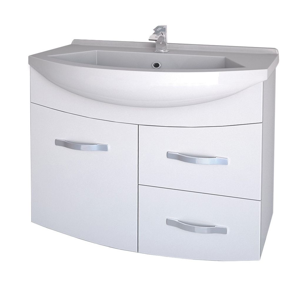 Подвесная коллекция со скругленными линиями фасада в 4-х размерах 55, 65, 75, 90 Лаконичный дизайн, глянцевая поверхность фасада, механизмы Hettich. Небольшая глубина тумбы органично впишется в любую, даже небольшую ванную комнату. Глубокий ящик