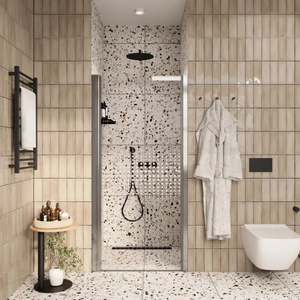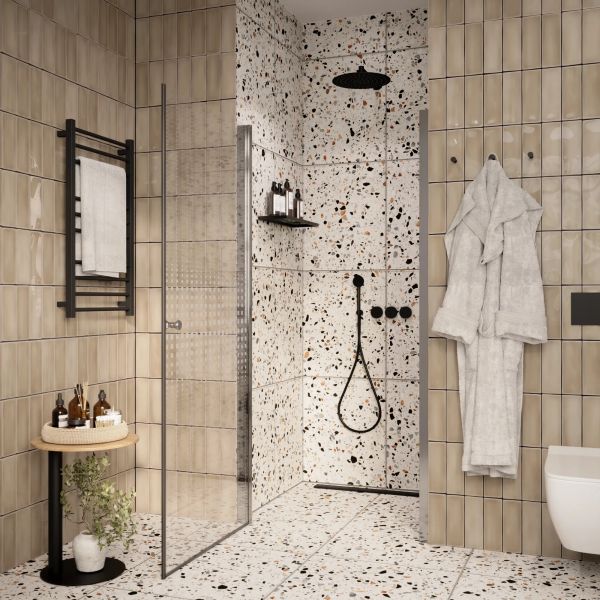 Защищает ванную комнату от брызг воды. Пол возле душевой зоны остается сухим, что снижает шансы поскользнуться после водных процедур.