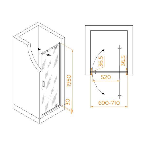 Элегантные стеклянные двери с пристенными профилями придают ванной комнате изысканность и строгость. Модели оснащены маятниковой петлёй, с защитой от провисания и подъёмом двери при открытии. Такой системой будет особенно удобно пользоваться если дверь установлена на плитку с встроенным трапом. Изделия оснащены Распашные двери открываются как наружу, так и внутрь, что обеспечит максимальный комфорт в процессе использования душевого пространства.Благодаря разнообразию размеров, подходят практически каждому клиенту.Ключевые характеристики: