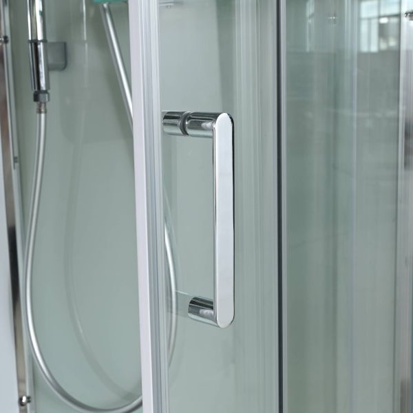Стильная душевая кабина AvaCan сочетает в себе высокую функциональность, практичность и надежность. При изготовлении применяется безопасное закаленное стекло, надежно фиксируемое алюминиевым профилем. Профиль сделан из алюминия повышенной прочности. Сборка без силикона (увеличивает срок службы, защищает от протечек), внутренняя сборка (облегчает установку и ревизию; позволяет установить в ограниченном пространстве и обойтись без демонтажа других сантехнических приборов), смеситель резьбовой (без хомутов). Двойные металлические ролики дверей (распределение нагрузки на два ролика, увеличивают срок службы). Душевая штанга(позволяет регулировать по высоте ручную лейку), ручная арома-лейка с витамином С (картридж в комплекте,есть возможность замены или удаления картриджа), полочки(из стекла, с ограничителем), сифон с гидрозатвором.