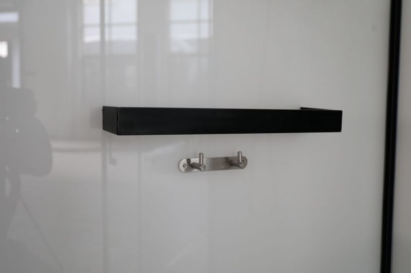 стеклянная полка в обрамление из чистой стали