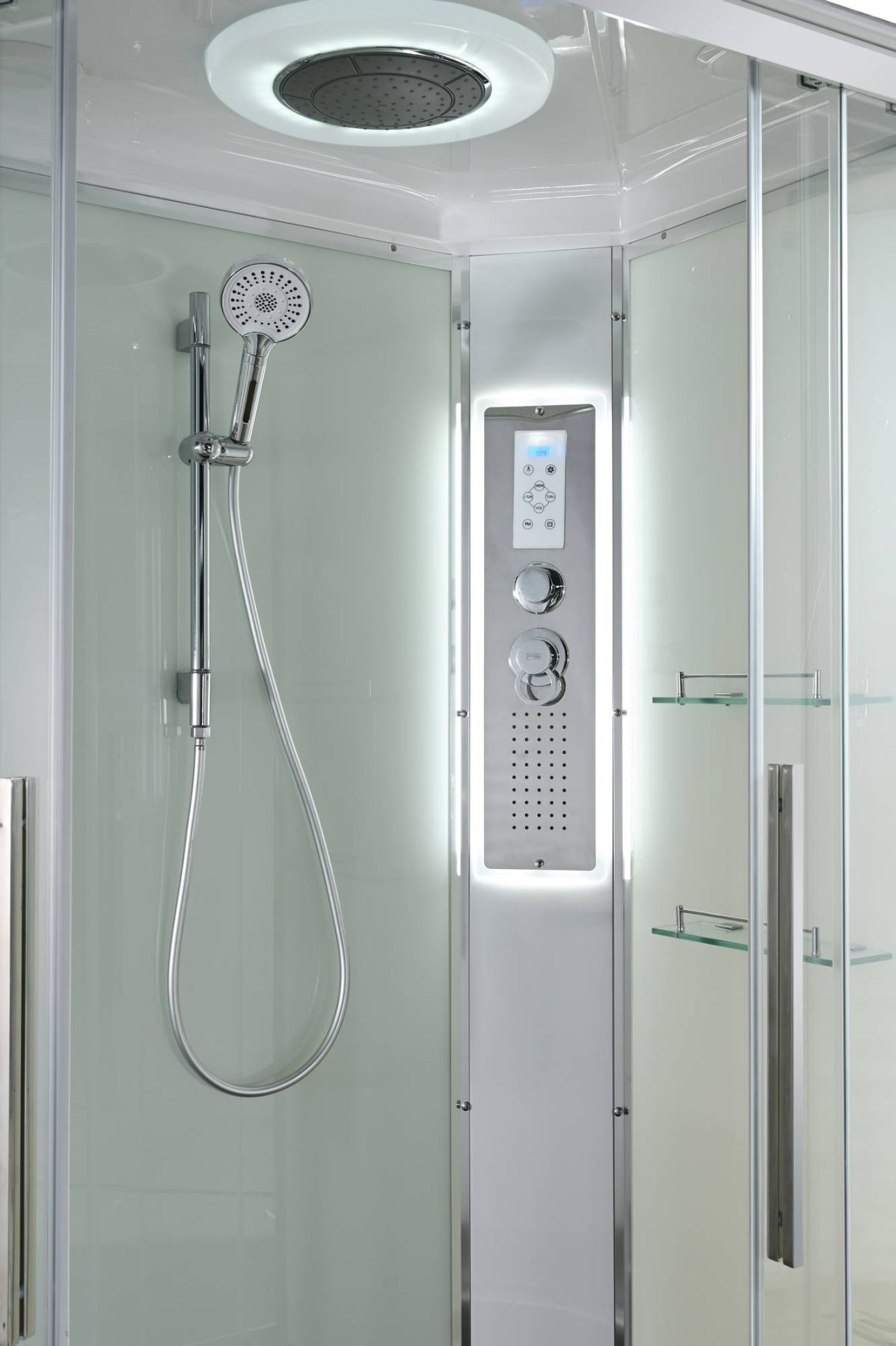 Стильная душевая кабина AvaCan сочетает в себе высокую функциональность, практичность и надежность. При изготовлении применяется безопасное закаленное стекло, надежно фиксируемое алюминиевым профилем.Профиль сделан из алюминия повышенной прочности. Сборка без силикона (увеличивает срок службы, защищает от протечек), внутренняя сборка (облегчает установку и ревизию; позволяет установить в ограниченном пространстве и обойтись без демонтажа других сантехнических приборов), смеситель резьбовой (без хомутов). Съемный экран поддона (позволяет осуществлять подключение и ревизию сифона).Двойные металлические ролики дверей (распределение нагрузки на два ролика, увеличивают срок службы). Душевая штанга(позволяет регулировать по высоте ручную лейку), ручная арома-лейка с витамином С (картридж в комплекте,есть возможность замены или удаления картриджа), полочки(из стекла, с ограничителем), сифон с гидрозатвором, сенсорный пульт управления с функциями: блютуз, LED подсветка, радио, вытяжка, гидромассаж спины, тропический (верхний) душ.