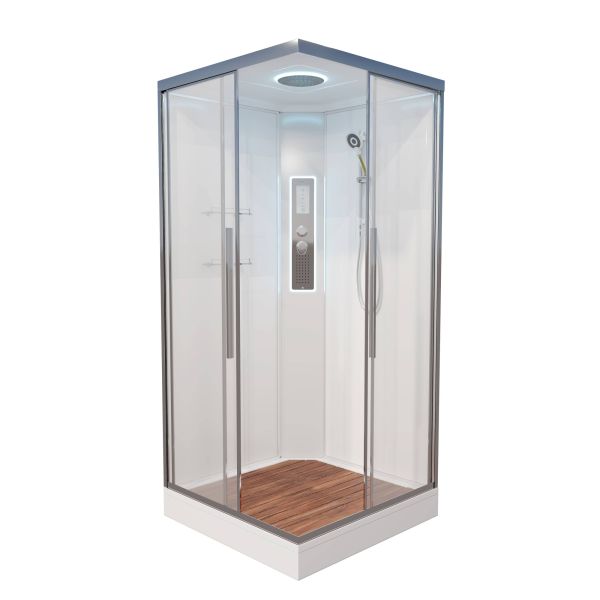 Стильная душевая кабина AvaCan сочетает в себе высокую функциональность, практичность и надежность. При изготовлении применяется безопасное закаленное стекло, надежно фиксируемое алюминиевым профилем.Профиль сделан из алюминия повышенной прочности. Сборка без силикона (увеличивает срок службы, защищает от протечек), внутренняя сборка (облегчает установку и ревизию; позволяет установить в ограниченном пространстве и обойтись без демонтажа других сантехнических приборов), смеситель резьбовой (без хомутов). Съемный экран поддона (позволяет осуществлять подключение и ревизию сифона).Двойные металлические ролики дверей (распределение нагрузки на два ролика, увеличивают срок службы). Душевая штанга(позволяет регулировать по высоте ручную лейку), ручная арома-лейка с витамином С (картридж в комплекте,есть возможность замены или удаления картриджа), полочки(из стекла, с ограничителем), сифон с гидрозатвором, сенсорный пульт управления с функциями: блютуз, LED подсветка, радио, вытяжка, гидромассаж спины, тропический (верхний) душ.