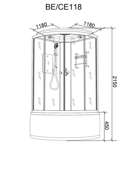 Душевая кабина BE118Размер: 118х118х215 смПросторный душевой уголок с высоким поддоном. Светлая модель актуальна для любого оформления ванной комнаты. Внутри кабины достаточно места, чтобы с комфортом принимать водные процедуры. Кабина герметична, вода сквозь стыки не просачивается. Внутри хорошо сохраняется тепло.Достоинства:Стекло: 4 мм матовое закаленное. На матовом полотне практически не видны разводы от воды и мыла.Стенки: закаленное белое стекло,4 мм.Профиль: белый, алюминиевый, устойчив к образованию коррозии.Поддон: высокий, полукруглый. В поддоне удобно купить детей и животных, замачивать крупные вещи.Раздвижные двери открываются плавно, створки смываются плотно.Комплектация: полка, верхний душ ТРОПИК, ручной душ, зеркало, налив воды в поддон. Сифон не пропускает в ванную запахи канализации.Внимание! Производитель оставляет за собой право вносить изменения в конструкцию и комплектацию моделей без предварительного уведомления!
