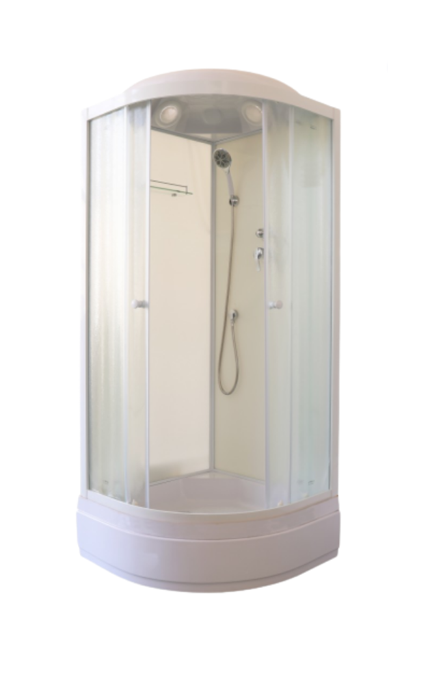 БЕЗСИЛИКОНОВАЯ СБОРКАДушевая кабина Parly BM86Размер: 85х85х215 смСветлая кабина из матового стекла лаконично впишется в любой интерьер и не будет перетягивать на себя внимание об общей задумки оформления ванной комнаты.Достоинства:Компактный размер. Внутри больше места, чем в других моделях в таком же размере, за счет отсутствия центральной панели.Матовое закаленное стекло (4 мм) устойчиво к случайным ударам. Матовое полотно не требует частой уборки.Задние стенки из закаленного матового стекла толщиной 4 ммПрофиль: белый алюминиевый. Не подвержен коррозии.Поддон: средний 26 см с бортиком 2 см, ассиметричный. Предупреждает разбрызгивание воды. Высоту поддона смогут преодолеть пожилые и люди, имеющие проблемы со здоровьем.Ролики: белые на клипсах, верхние двойные и одинарные нижние.Раздвижные двери ходят плавно и плотно смыкаются за счет магнитной ленты.Сборка без применения силикона. Конструкция душевой кабины обеспечивает слив воды внутрь поддона. Сам поддон по всему периметру оснащен водонепроницаемым бортиком высотой 2 см, который исключает перелив воды за пределы душевой зоны.Внимание! Производитель оставляет за собой право вносить изменения в конструкцию и комплектацию моделей без предварительного уведомления!