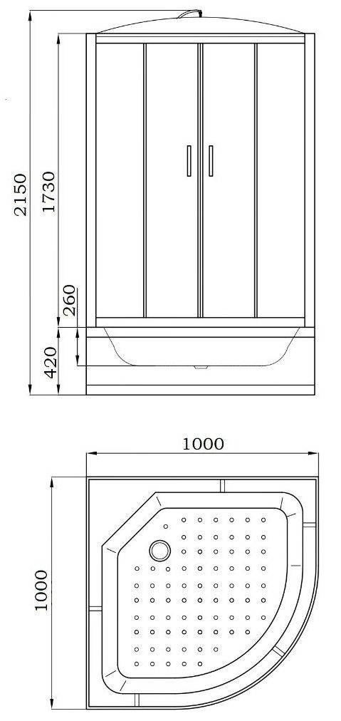 Поддон: высокий 42 см, полукруглый. Поддон удобно использовать в качестве ванночки для купания детей или замачивания вещей.