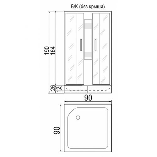 ~ без крыши ~ штанга ~ ручной душ 3-х позиц. ~ смеситель ~ зеркало ~ полочки (2 шт) ~ сиденье ~ поддон квадр.низ.со съемн. экраном (Н=26см) ~ сифон