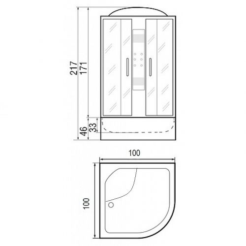~ крыша ~ верхний душ ~ верх.свет ~ динамик ~ вентилятор ~ цент.стойка стеклянная ~лунный свет ~ сенсор. пульт упр-я ~ радио~ bluetooth ~ смеситель с переключ. режимов ~ 8 г/м форс. ~поясничный. массажер ~ 4 г/м форс. д/поясничка ~ штанга ~ руч.душ 3х режимн. ~ зеркало ~ полка ~ поддон п/кр. выс.с/съем. экр.(Н=46см) ~ сиденье ~ сифон