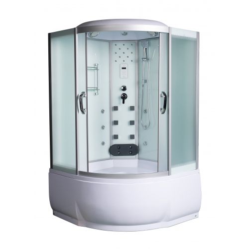 ~ крыша ~ верхний душ ~ верх.свет ~ динамик ~ вентилятор ~ цент.стойка стеклянная ~лунный свет ~ пульт упр-я сенсор ~ радио ~ bluetooth ~ смеситель с переключ. режимов ~ 14 г/м форс. ~поясничный массажер ~ 4 г/м форс. д/поясничка ~ штанга ~ ручной душ 3-х позиц. ~ 2 ярус. полка ~ под. высокий с сидением со съем.экр. (Н=55 см) ~ сиденье ~ слив-перелив с гофтрубой
