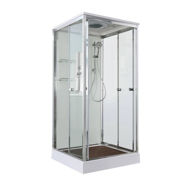 Стильная душевая кабина AvaCan сочетает в себе высокую функциональность, практичность и надежность. При изготовлении применяется безопасное закаленное стекло, надежно фиксируемое алюминиевым профилем. Профиль сделан из алюминия повышенной прочности. Сборка без силикона (увеличивает срок службы, защищает от протечек), внутренняя сборка (облегчает установку и ревизию; позволяет установить в ограниченном пространстве и обойтись без демонтажа других сантехнических приборов), смеситель резьбовой (без хомутов). Съемный экран поддона (позволяет осуществлять подключение и ревизию сифона).Двойные металлические ролики дверей (распределение нагрузки на два ролика, увеличивают срок службы). Душевая штанга(позволяет регулировать по высоте ручную лейку), ручная арома-лейка с витамином С (картридж в комплекте,есть возможность замены или удаления картриджа), полочки(из стекла, с ограничителем), сифон с гидрозатвором.