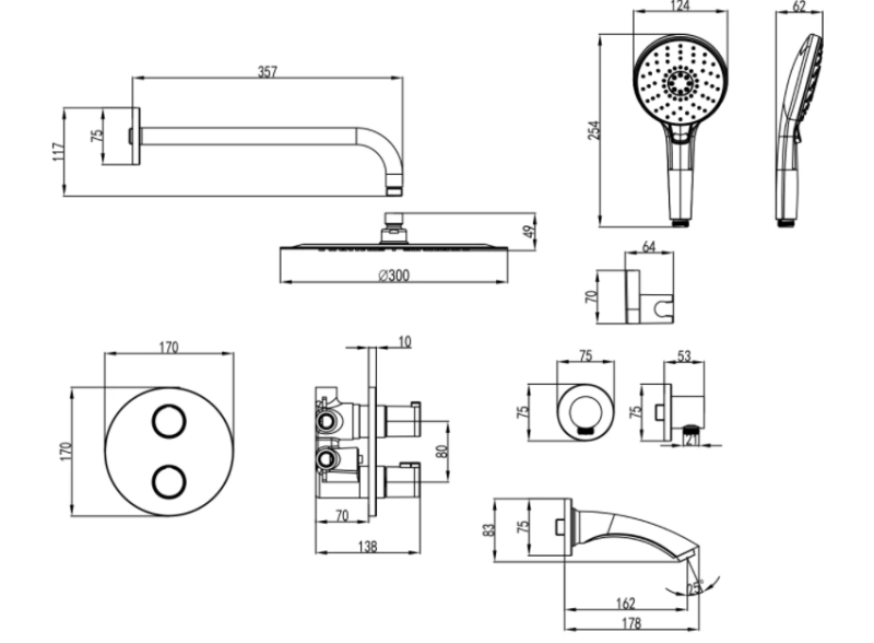 • Размер верхнего душа, см: