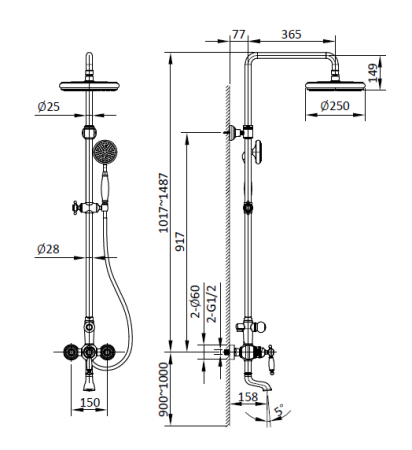 - Размер верхнего душа, см:25