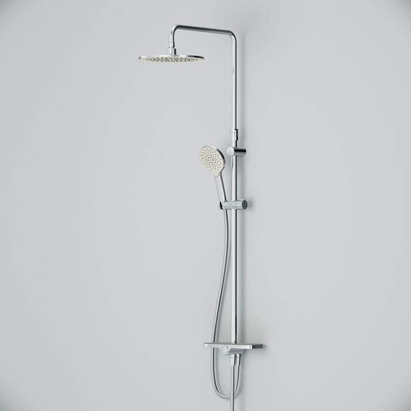 Тотальный дизайн в действии: все детали душевой системы – от пропорций ручного и верхнего душей до рисунка расположения форсунок на лейках.Премиальные размеры и продуманные детали: увеличенный диаметр душевых леек (верхний душ 254 мм и ручной душ 120 мм) позволит ощутить преимущества тропического душа, тогда как увеличенная длина шланга 1750 мм обеспечит свободу движений во время принятия душа. Телескопическая поворотная штанга регулируется по высоте в диапазоне от 1030 до 1460 мм, обеспечивая комфорт для людей любого роста, а шаровой шарнир в держателе верхнего душа позволяет регулировать угол его наклона.Нижнее крепление штанги выполнено в виде полочки, а переключатель верхний-ручной душ является ее продолжением. Нажав на него, вы можете менять источник потока воды от ручной лейки к верхнему душу.