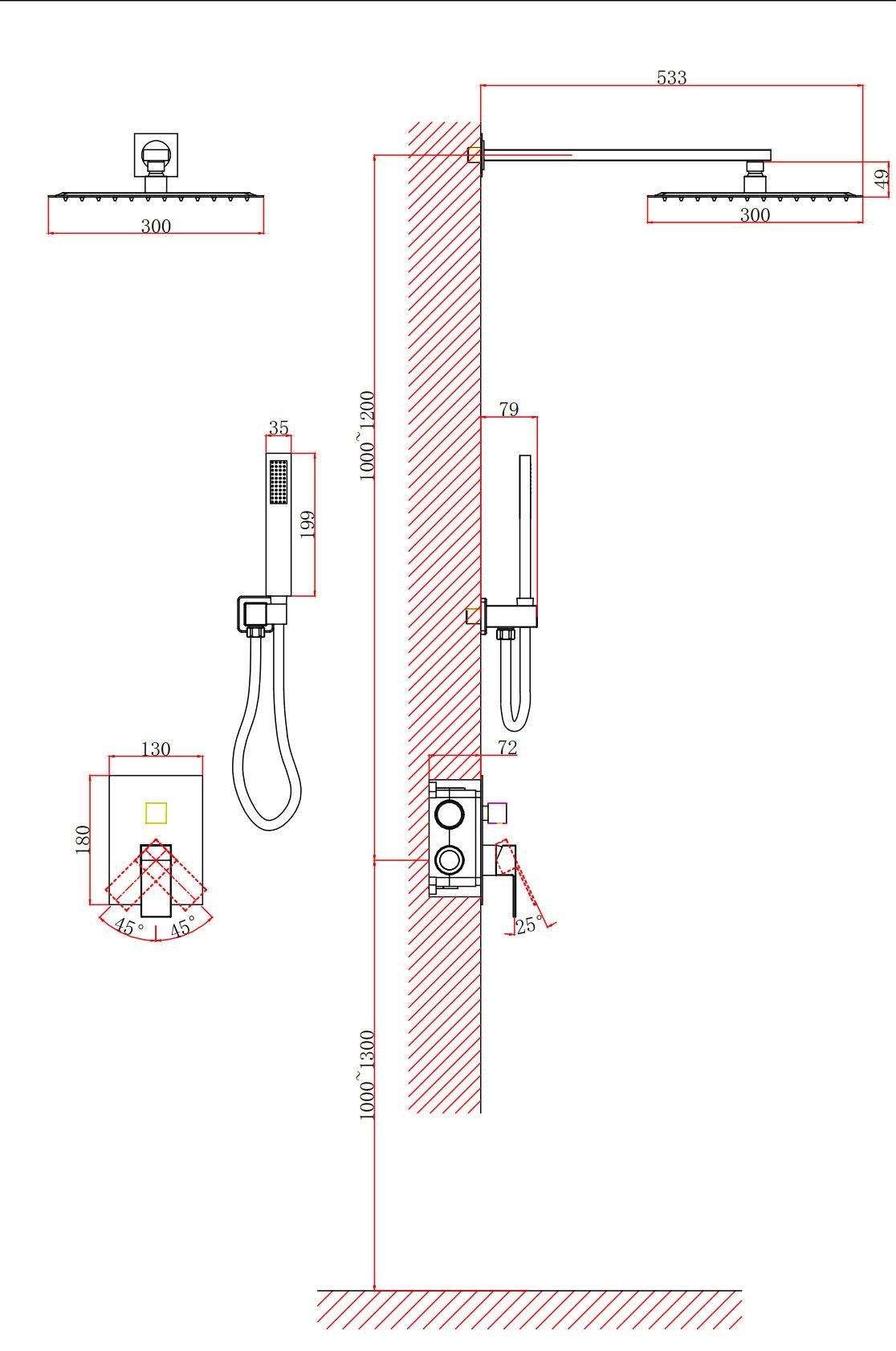 - Размер верхнего душа, см:30