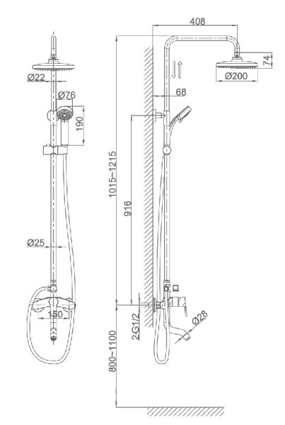 - Размер верхнего душа, см:20