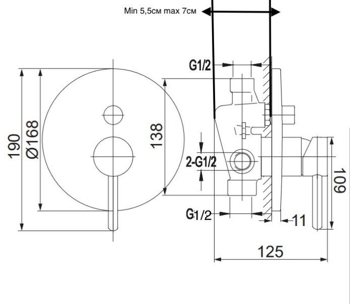 - Размер ручного душа, см:12