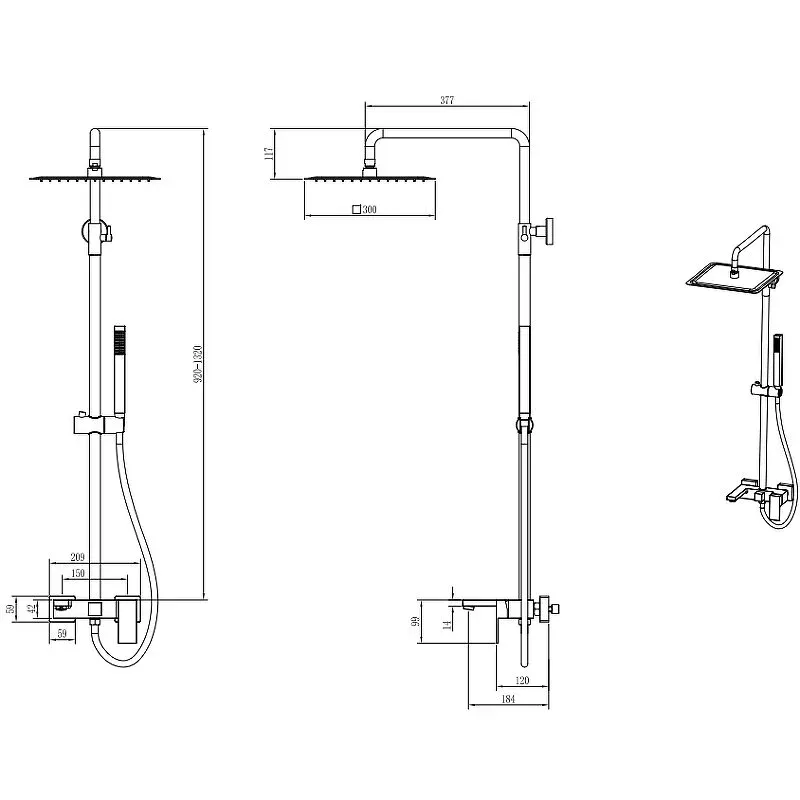 Душевая система Boheme Qubic, Смеситель для ванны с душевым гарнитуром Способ монтажа: вертик... Подробнее