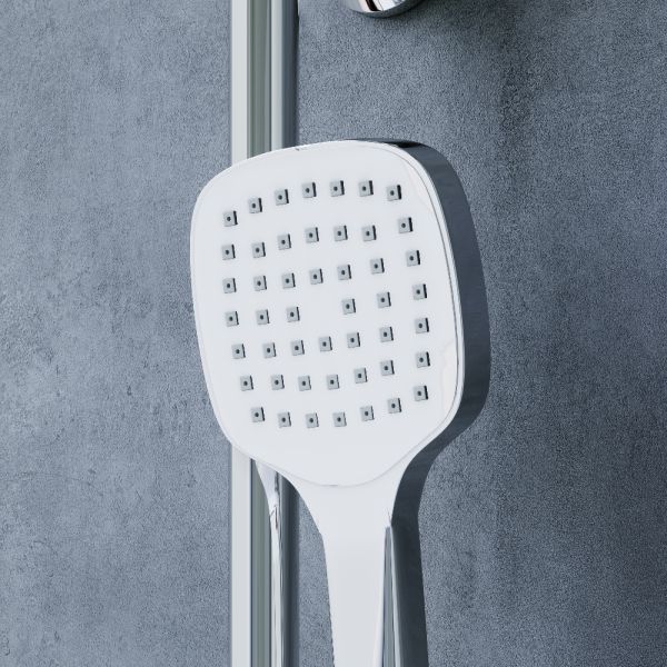 Стильные и большие квадратные лейки обеспечат комфортный напор воды, а слайдер ручного душа и крепление верхнего позволит настроить нужное положение.