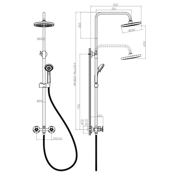 Душевая стойка Rossinka Q02-45 для ванны и душаВ комплекте:Керамические вентильные головки (угол поворота - 90?)