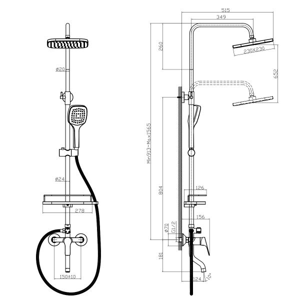 Размер верхнего душа: 23x23 см.