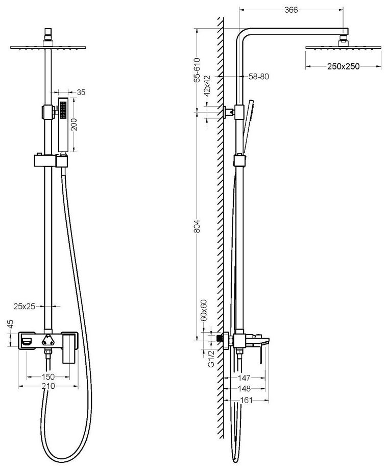 - Регулируемая высота душевой штанги