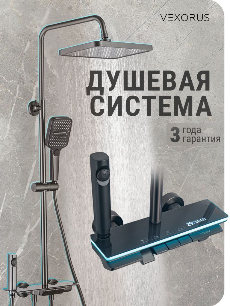 Душевая система с тропическим душем Vexorus - это система, которая превратит вашу ванную комнату в настоящий уголок роскоши и комфорта. Изделие выполнено в графитовом цвете, что позволяет гармонично его использовать в современном интерьере.