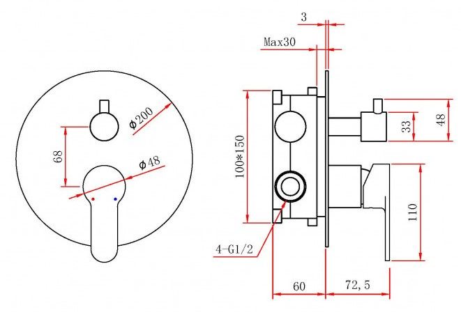 - Размер верхнего душа, см:25