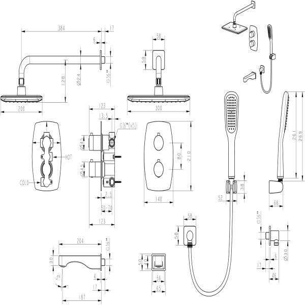 - Размер верхнего душа, см:30