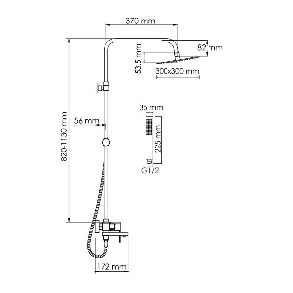 Стойка для душа, Ø 22 мм регулируемая по высоте