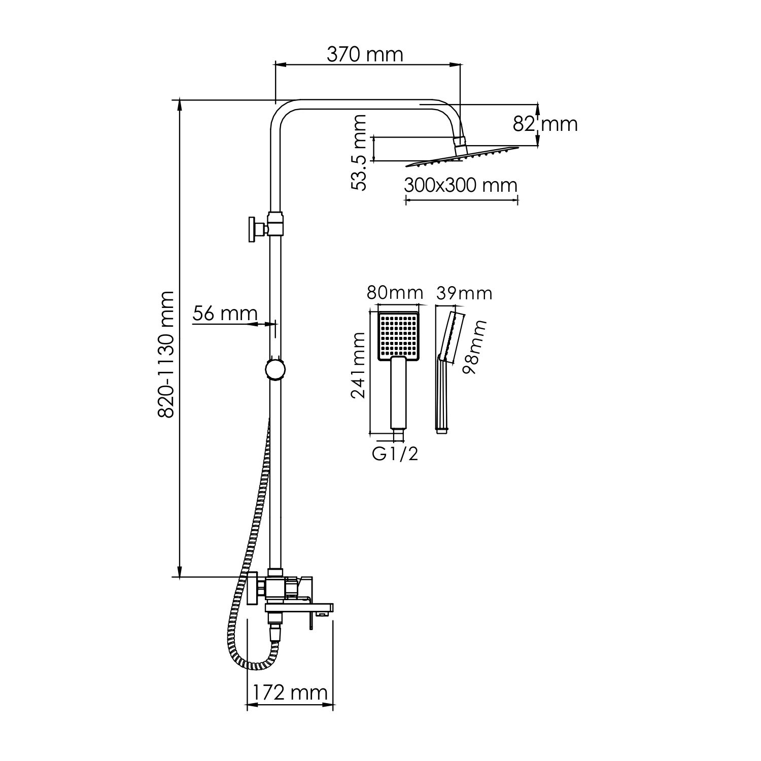 - Размер верхнего душа, см:30