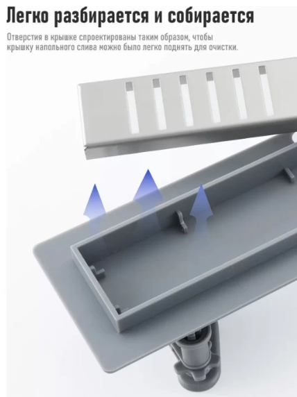 Душевой трап Gappo G87007-5 с решеткой из нержавеющей стали линейного типа. Компактный, но очень эффективный. Гарантирует скорость слива 30 литров в минуту. Гидрозатвор комбинированный, то есть сухой и мокрый. Не пропускает запахи канализации в помещение. Его легко чистить, так как он просто разбирается.