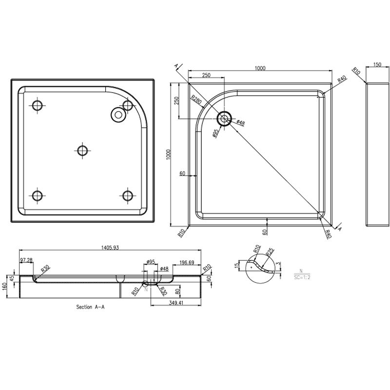 Стандартные размеры, см:100x100
