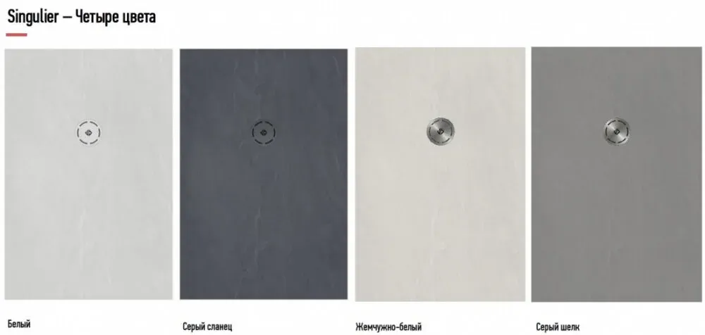 • Ультратонкий поддон для душевого пространства без внутреннего бортика, но с небольшим уклоном, достаточным для стекания воды в направлении слива