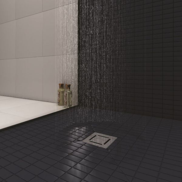 Решетка толщина 3мм, нержавеющая сталь AISI 304Горловина трапа, пластикФланец трапа с переходником, РРМонтажная заглушка, PPСамопромывной S-образный сифон PPВертикальный выпуск, пропускная способность 48л/мин, монтаж 360°Монтажный ключ, пластик