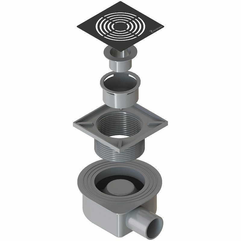 Оснащение: решетка / улавливатель волос / изолирующий фланец.