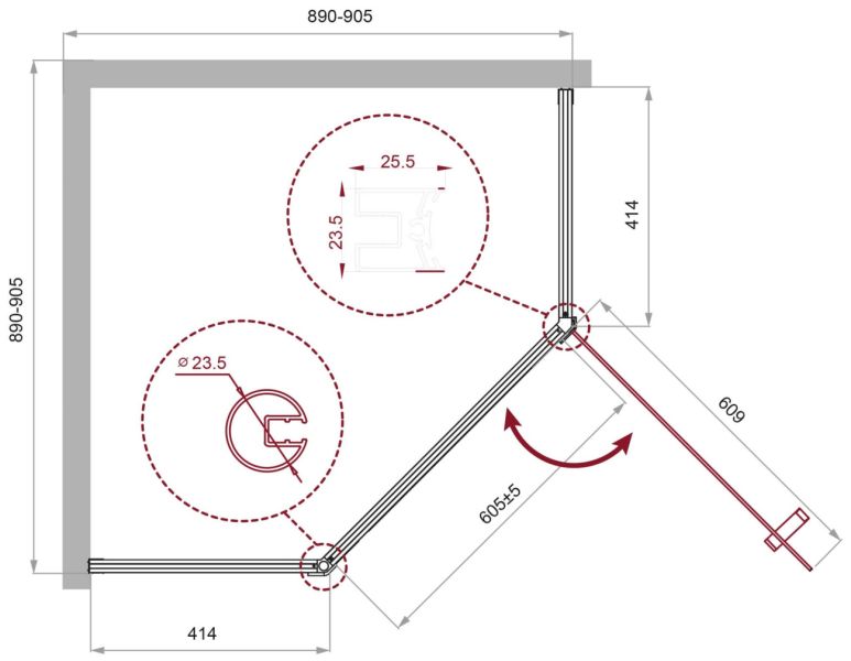 Характеристики Размеры : 90×90×195 см. Толщина стекла : 5 мм. Материал проф... Подробнее