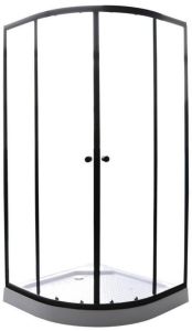 Уголок ZE911B душевой PARLY с поддоном (90х90х190)Размер: 90х90х190 смСочетание черного профиля и прозрачного стекла отлично впишется в современную ванную комнату. Уголок полукруглой формы с раздвижными дверями экономит полезную площадь в санузле.Достоинства: