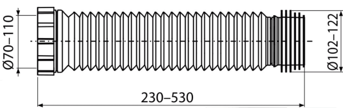 - Диаметр подключения 70/110×102/122 мм