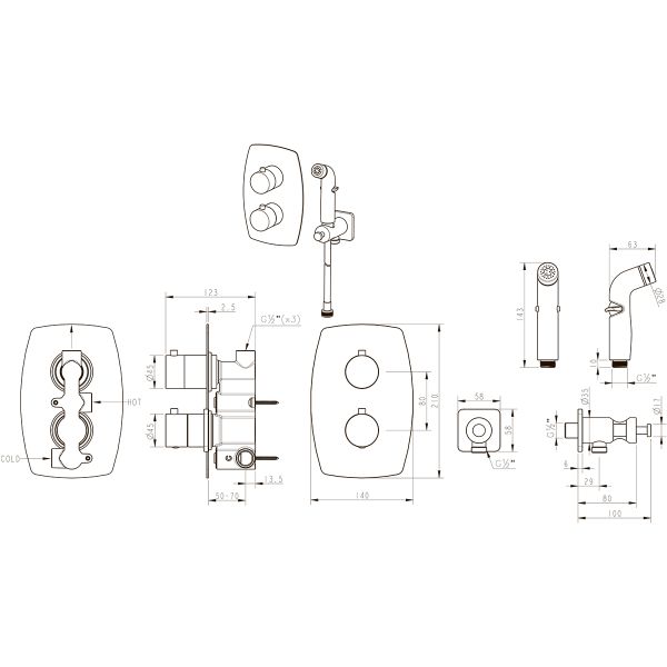 - Аксессуары в комплекте (лейка гигиенического душа с регулятором напора воды, шланг 1,2 м )