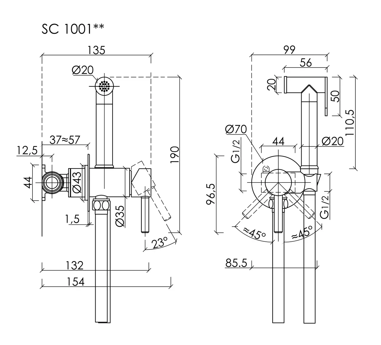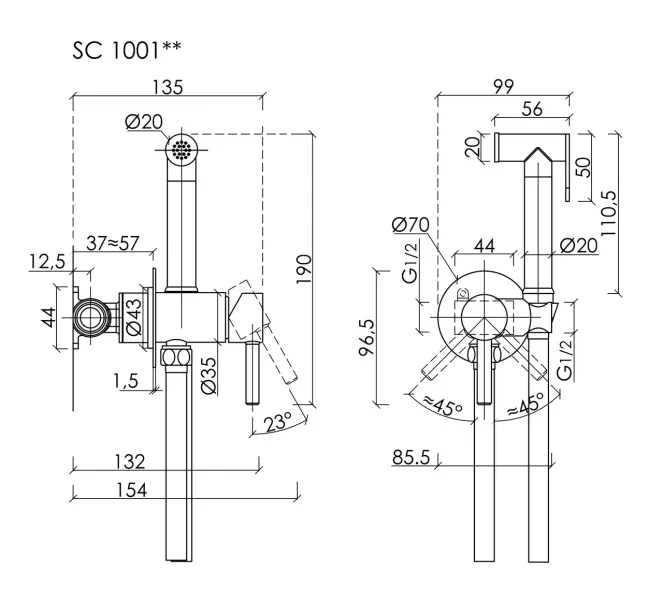 Гигиенический душ SANCOS Start со смесителем, c внутренней частью, цвет хром глянцевый, встраиваемый, настенныйПолный комплект со смесителем